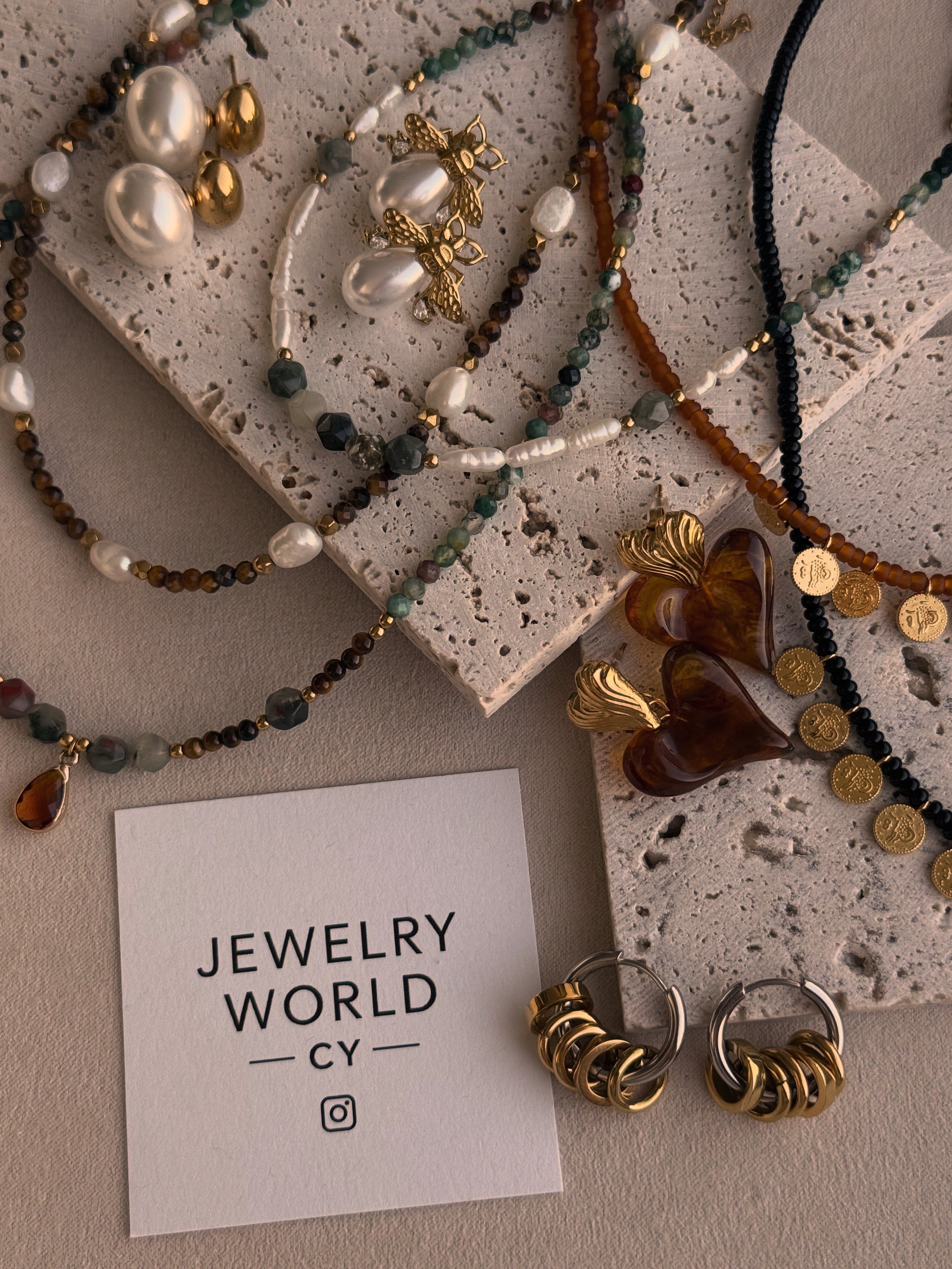 The love for beautiful handmade jewelry led to the creation of an online store, through which I present my own jewelry selections. Each piece is carefully chosen with passion during my travels across every corner of Greece.
