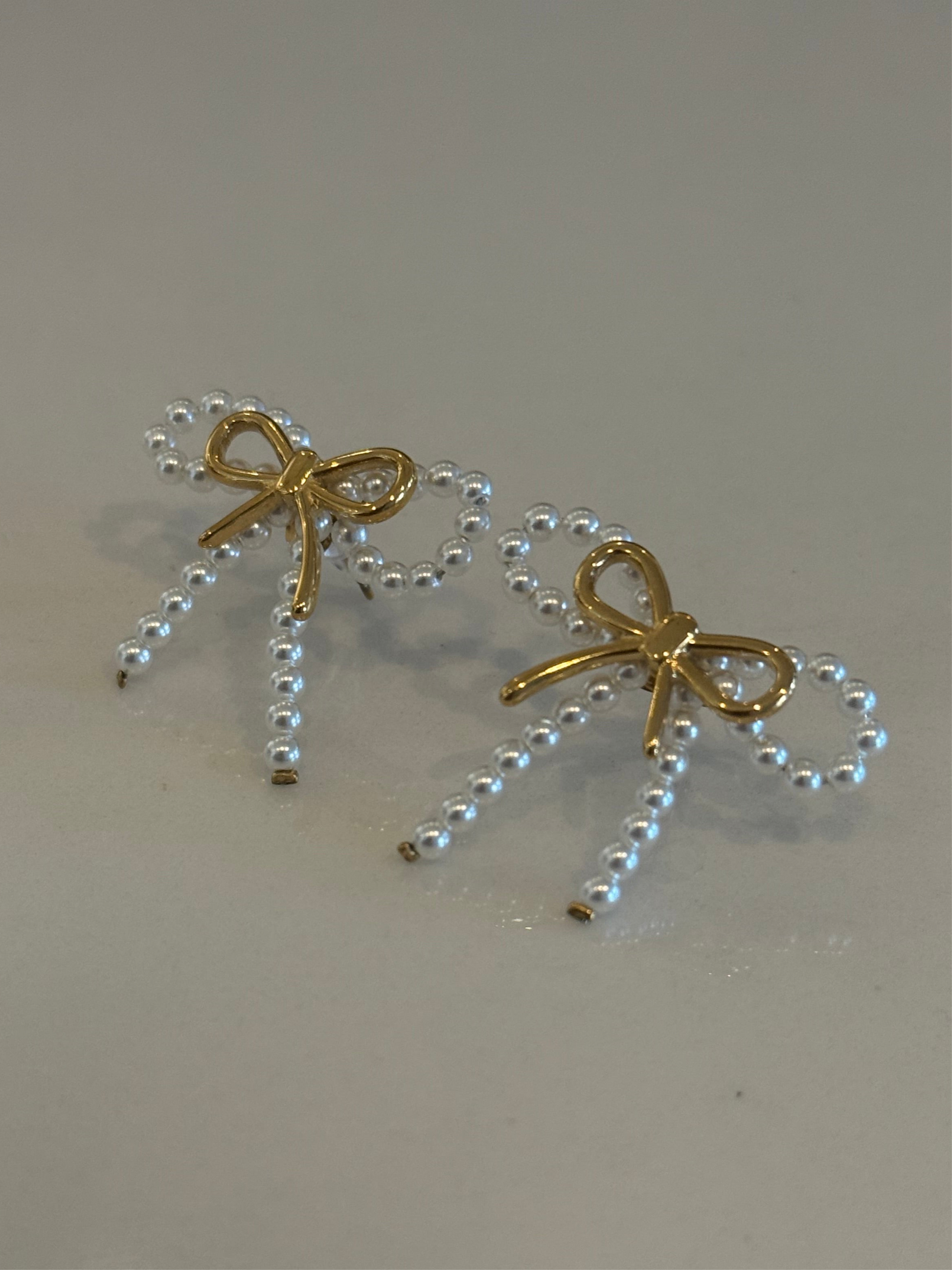 Bow earrings with pearls and stainless steel parts