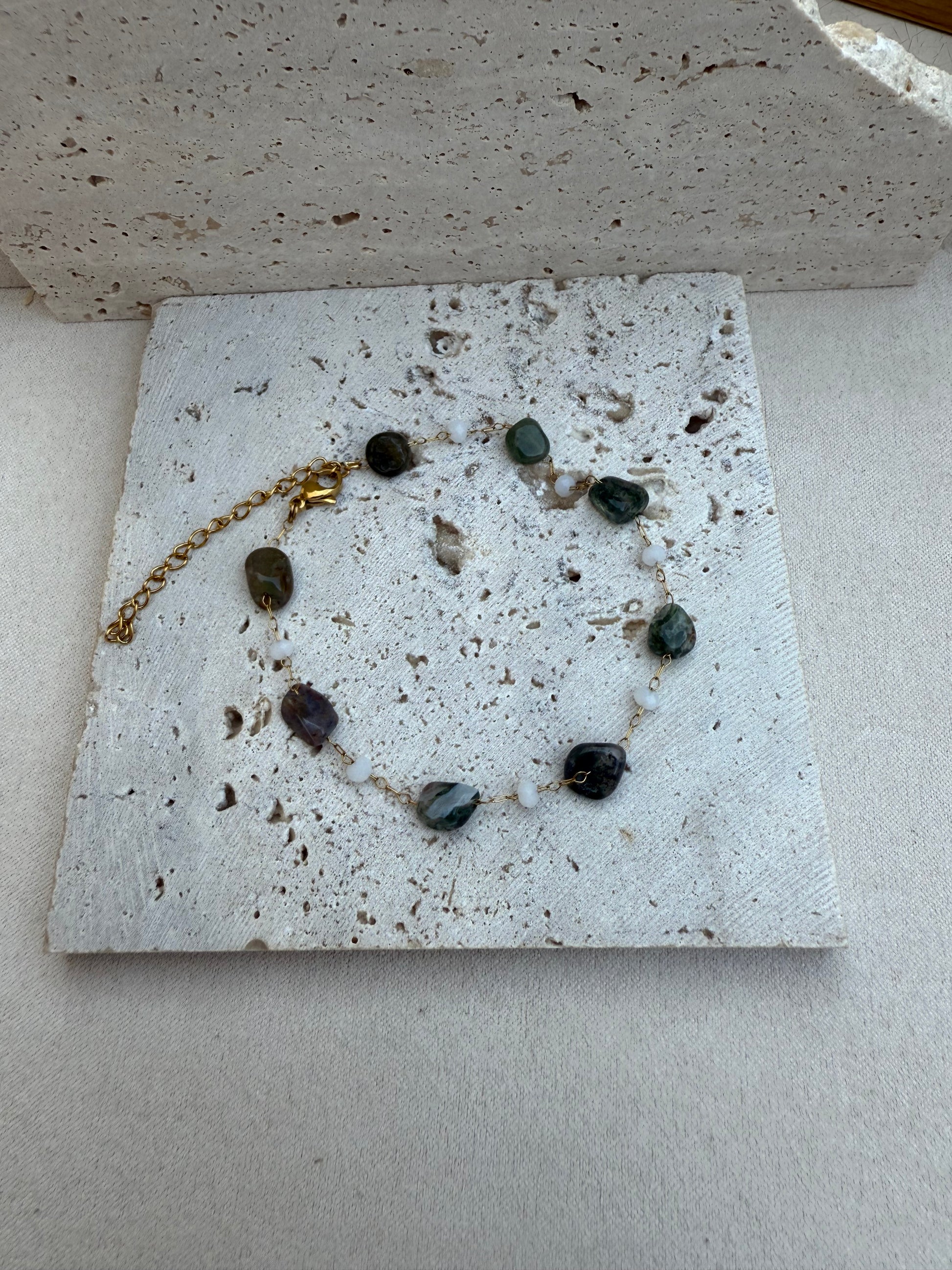 Semi-precious stones with stainless steel metal parts